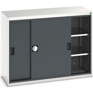 Hoge kast Verso 1300x550x1000mm met schuifdeur en 2 legborden, Max. belasting: 1000 kg, Totale hoogte: 1000 mm, Totale breedte: 1300 mm, Aantal legborden: 2, Totale diepte: 550 mm, Frame kleur: Lichtgrijs, Kleur deur: Antraciet, Model: Schuifdeur, Max. belasting per legbord: 75 kg, RAL: 7016 7035, Materiaal: Plaatstaal, Recyclebare verpakking: Ja - 100%, Gerecyclede verpakkingen: 93 %, Gewicht: 72.14 kg
