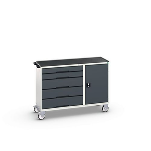 Montagewagen Verso 5 laden 1 deur, Totale hoogte: 965 mm, Aantal laden: 5, Totale breedte: 1300 mm, Totale diepte: 550 mm, Kleur: Antraciet, Kleur ombouw: Lichtgrijs, Max. belasting per lade: 50 kg, Aantal deuren: 1, Materiaal: Staal, Werkbank blad materiaal: Staal, Lade kleur: Antraciet