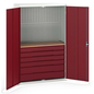 Multifunctionele kast Verso, Max. belasting: 1000 kg, Lean Management: nee, Totale hoogte: 2000 mm, Aantal laden: 6, Totale breedte: 1300 mm, Aantal legborden: 1, Totale diepte: 550 mm, Frame kleur: Lichtgrijs, Max. belasting per legbord: 75 kg, Max. belasting per lade: 75 kg, Met lade: ja, Geleverd gemonteerd: ja, Materiaal: Staal, Kleur: Rood