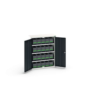 Magazijnkast Verso met 20 bak, Totale hoogte: 1000 mm, Totale breedte: 800 mm, Totale diepte: 350 mm, Bak kleur: Antraciet, Aantal bakken: 20, Kleur ombouw: Lichtgrijs, Kleur deur: Blauw, Materiaal: Metaal, Lean Management: nee