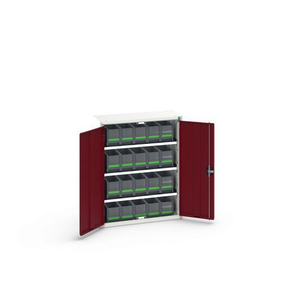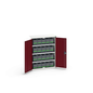 Magazijnkast Verso met 20 bak, Totale hoogte: 1000 mm, Totale breedte: 800 mm, Totale diepte: 350 mm, Bak kleur: Antraciet, Aantal bakken: 20, Kleur ombouw: Lichtgrijs, Kleur deur: Rood, Materiaal: Metaal, Lean Management: nee