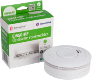 Ei 650 IRF brandmelder, wit, diameter 115mm, (bxl) 115x115mm, stroomverzorging primair batterij/accu, standaard via radiografische verbin, werkingsprincipe optisch, opbouw, koppelbaar radiografisch optioneel, max. aantal koppelbaar 30, standalone, uitvoering test-/pauzeknop combinatie,