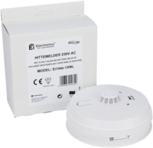 Ei brandmelder, wit, diameter 148mm, stroomverzorging primair netvoeding, voedingsspanning bij AC 50Hz 230V, verbinding via kabel, werkingsprincipe thermomaximaal, opbouw, koppelbaar radiografisch optioneel, met backup-batterij, batterij meegeleverd alkaline, max. aantal koppelbaar 30, standalone,