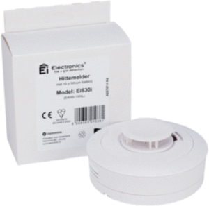 Ei brandmelder, wit, diameter 115mm, stroomverzorging primair batterij/accu, voedingsspanning bij DC 9V, werkingsprincipe thermomaximaal, opbouw, koppelbaar radiografisch optioneel, max. aantal koppelbaar 30, standalone, uitvoering test-/pauzeknop combinatie, aanspreektemperatuur 58°C,
