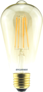 Sylvania led-lamp, dimbaar, voet E27, 6W, temperatuur 2500K, uitvoering glas/afdekking overig, weergave-index 80 - 89, lichtstroom 560lm, lampvorm overig, lampaanduiding overig, filament lamp, lichtkleur vlgs. EN 12464-1 warmwit < 3300 K, specifieke lichtstroom lamp 93lm/W,