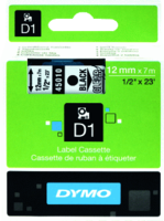 Dymo tapes D1. Deze duurzame tapes zijn vervaardigd uit hoogwaardig polyester met een glanzende finish en zijn te gebruiken op nagenoeg elke vetvrije, gladde ondergrond. Deze labels kunnen zelfs temperaturen van -20 tot + 120 graden verdragen. Deze D1 tapes zijn geschikt voor de volgende Dymo Pocket: 1000, 1000+, 2000, 3500, 4500, 5500, LM100, LM350, LM400, LM450, LP100, LP200, LP250, LP300, LP350. Formaat (B x L): 12,0 mm x 7,0 m. Kleur: zwart-rood.