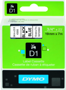 DYMO TAPE 19MM BL/ZW - DYMO labeltape D1, tekstkleur zw, bandkleur bl, le 7m, br band 19mm