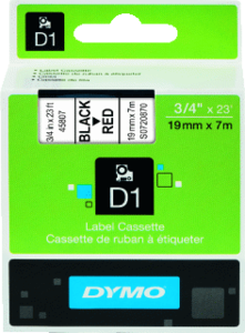 DYMO TAPE 19MM RO/ZW - DYMO labeltape D1, tekstkleur zw, bandkleur rd, le 7m, br band 19mm