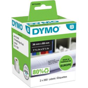 Dymo LW S0722400 / 99012 Authentiek Grote Adresetiketten Zelfklevend Wit 36 x 89 mm 2 Rollen à 260 Etiketten