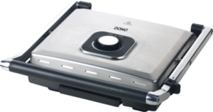 Domo grill (elektrisch) contactgrill, roestvaststaal (RVS), breedte 418mm, diameter 565mm, (hxl) 154x380mm, aansluitwaarde 2000W, anti aanbaklaag, bouwvorm vrijstaand model, bruikbaar zonder onderstel, diameter grillvlak 565mm, inklapbaar tot koffer, met controlelamp, met thermostaat,