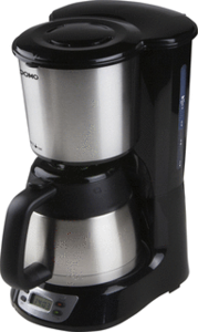 Domo koffiezetapparaat, zwart/RVS, (hxbxd) 345x195x27mm, uitvoering snelfilterapparaat, aansluitwaarde 1000W, spanning 220 - 240V, aantal kopjes 2 - 8, laadvermogen 1000ml, uitvoering kan thermoskan, warmhoudplaat, timer, druppelstop, automatische uitschakeling, type filter inzetfilter,