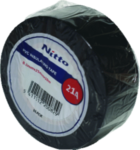 NITT PVC TAPE ZWART 25MMX10M - NITT zelfkl tape 21A PREMIUM, polyvinylchloride (PVC), zw