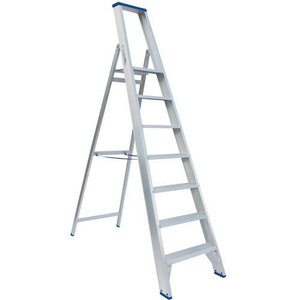 Industriële opklapbare trapladder van aluminium met polyestercoating. Stevig door de staander met zwaar U-profiel. Betrouwbare constructie: treden zijn gelast en geklonken aan de staanders. Poot bevestigd in veiligheidsvoet van antisliprubber.