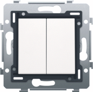 Niko Original installatieschakelaar, kunststof, wit, inbouw, type schakeling serieschakelaar, bedieningswijze wip/drukker, samenstelling basiselement, drukvlakschakelaar, halogeenvrij, uitvoering oppervlakte mat, oppervlaktebescherming overig, 2 wippen, kwaliteitsklasse overig, met montageplaat,