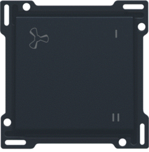 Niko Pure bed.element / centr.pl. schakelmat., kunststof, zwart, (bxhxd) 45x45x10mm, uitvoering enkele drukker, gebruik standenschakelaar, uitvoering oppervlakte mat, opdruk/indicatie symbool"toerental", beschermingsgraad (IP) IP41, RAL-nummer 9005, halogeenvrij, kwaliteit thermoplast,