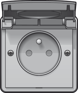 Niko New Hydro wandcontactdoos (wcd schakelmat.), grijs, uitvoering aardingspen, 1 actieve contacten (rond), 1 eenheid, 1 contactdozen schakelbaar, 2 fasen, aansluitwijze schroefklem, met klapdeksel, met verhoogde aanraakbeveiliging, RAL-nummer 7035