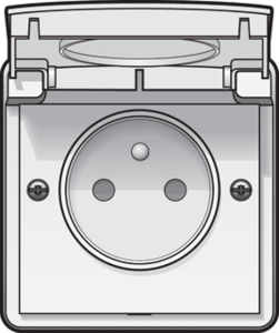 Niko New Hydro wandcontactdoos (wcd schakelmat.), wit, uitvoering aardingspen, 1 actieve contacten (rond), 1 eenheid, 1 contactdozen schakelbaar, 2 fasen, aansluitwijze schroefklem, met klapdeksel, met verhoogde aanraakbeveiliging, RAL-nummer 9010