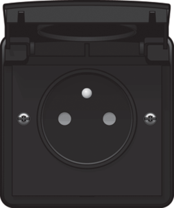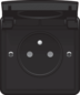 Niko New Hydro wandcontactdoos (wcd schakelmat.), zwart, uitvoering aardingspen, 1 actieve contacten (rond), 1 eenheid, 1 contactdozen schakelbaar, 2 fasen, aansluitwijze schroefklem, met klapdeksel, met verhoogde aanraakbeveiliging, RAL-nummer 9005