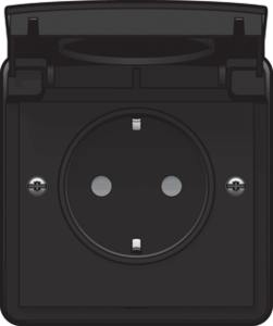 Niko New Hydro wandcontactdoos (wcd schakelmat.), zwart, uitvoering contactdoos CEE 7/3 (type, 2 actieve contacten (vlak), 1 eenheid, 1 contactdozen schakelbaar, 2 fasen, aansluitwijze schroefklem, met klapdeksel, met verhoogde aanraakbeveiliging, RAL-nummer 9005