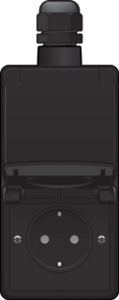 Niko New Hydro wandcontactdoos (wcd schakelmat.), zwart, uitvoering contactdoos CEE 7/3 (type, 1 actieve contacten (vlak), 2 eenheden, 2 contactdozen schakelbaar, 2 fasen, aansluitwijze schroefklem, met klapdeksel, met verhoogde aanraakbeveiliging, RAL-nummer 9005