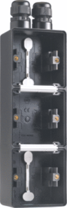 Niko New Hydro opbouwbak inbouwschakelmateriaal, kunststof, zwart, samenstelling opbouwbak, montagerichting verticaal, beschermingsgraad (IP) IP55, 3 eenheden, uitvoering oppervlakte glanzend, slagvast, met wartelinvoering, schakelmateriaalhoogte 72mm, schakelmateriaalbreedte 72mm, rechthoekig,