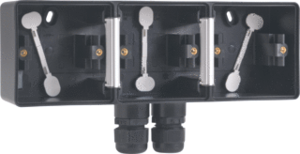 Niko New Hydro opbouwbak inbouwschakelmateriaal, kunststof, zwart, samenstelling opbouwbak, montagerichting horizontaal, beschermingsgraad (IP) IP55, 3 eenheden, uitvoering oppervlakte glanzend, slagvast, met wartelinvoering, schakelmateriaalhoogte 72mm, schakelmateriaalbreedte 210mm, rechthoekig,