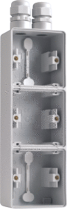 Niko New Hydro opbouwbak inbouwschakelmateriaal, kunststof, grijs, samenstelling opbouwbak, montagerichting verticaal, beschermingsgraad (IP) IP55, 3 eenheden, uitvoering oppervlakte glanzend, slagvast, met wartelinvoering, schakelmateriaalhoogte 210mm, schakelmateriaalbreedte 72mm, rechthoekig,