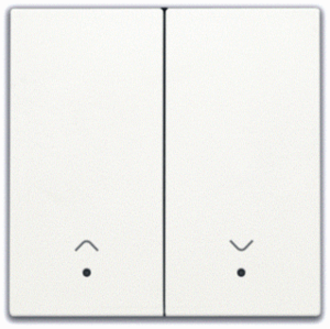Niko RF bed.element / centr.pl. schakelmat., kunststof, wit, (bxhxd) 45x45x8mm, uitvoering 2-delige drukker, gebruik jaloezie, uitvoering oppervlakte mat, opdruk/indicatie symbool"pijlen", controlevenster/verlicht, beschermingsgraad (IP) IP41, RAL-nummer 9010, halogeenvrij, kwaliteit thermoplast,