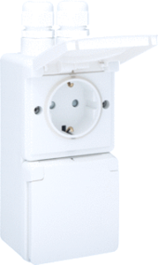 Niko Hydro wandcontactdoos (wcd schakelmat.), wit, uitvoering contactdoos CEE 7/3 (type, 1 actieve contacten (vlak), 2 eenheden, 2 contactdozen schakelbaar, 2 fasen, aansluitwijze schroefklem, met klapdeksel, met verhoogde aanraakbeveiliging, RAL-nummer 9010