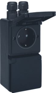 Niko Hydro wandcontactdoos (wcd schakelmat.), zwart, uitvoering contactdoos CEE 7/3 (type, 1 actieve contacten (vlak), 2 eenheden, 2 contactdozen schakelbaar, 2 fasen, aansluitwijze schroefklem, met klapdeksel, met verhoogde aanraakbeveiliging, RAL-nummer 9005