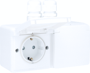 Niko Hydro wandcontactdoos (wcd schakelmat.), wit, uitvoering contactdoos CEE 7/3 (type, 4 actieve contacten (vlak), 2 eenheden, 2 contactdozen schakelbaar, 2 fasen, aansluitwijze schroefklem, met klapdeksel, met verhoogde aanraakbeveiliging, RAL-nummer 9010