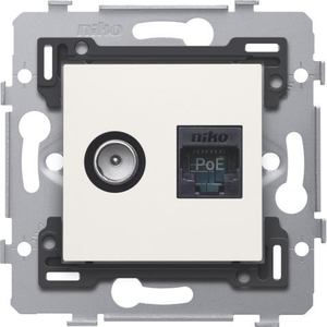 Niko Combinatie coax met RJ45 aansluiting Modular-Jack Basiselement met centrale afdekplaat 2 connectoren Zonder label wit 101-79238