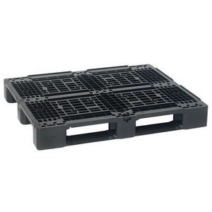 Gerecyclede pallet Duurzaam kunststof pallet, gevormd uit één stuk. Niet-poreuze pallet, houdt geen vloeistoffen tegen. Verzorgde en veilige reiniging met open structuur. Pallet stapelbaar op klassiek palletrek.