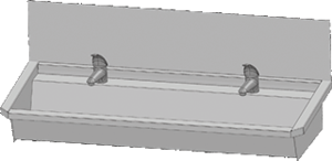 Intersan Sanilav 3.0 wastrog, roestvaststaal (RVS), (dxh) 474x197mm, rechthoekig, met achterwand, 2 gebruikers, kwaliteitsklasse RVS 304 (1.4301), antibacteriƫle behandeling, soort tappunt mengkraan, plaats afvoer centraal/midden, watertoevoer koud- en warmwater, bediening hand,