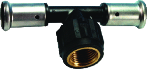 Henco 13PK fitting met 3 aansluitingen T-stuk, aansluiting 1 polyvinylidenefluoride (P, uitwendige buisdiameter aansluiting 20mm, aansluiting 3 polyvinylidenefluoride (P, aansluiting 2 messing, systeemgebonden, oppervlaktebescherming aansluiting geen (onbehandeld), nom. diameter aansluiting 1 DN 10,
