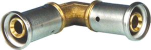 Henco 1P fitting met 2 aansluitingen 1-delig, lengte 59mm, bocht, uitwendige buisdiameter aansluiting 16mm, nom. diameter aansluiting 1 DN 8, aansluiting 1 messing, uitwendige buisdiameter aansluiting 16mm, aansluiting 1 persmof, nom. diameter aansluiting 2 DN 8, aansluiting 2 persmof, KIWA-keur,
