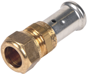 Henco 30P fitting met 2 aansluitingen 1-delig, lengte 61mm, recht, uitwendige buisdiameter aansluiting 20mm, nom. diameter aansluiting 1 DN 10, aansluiting 1 messing, uitwendige buisdiameter aansluiting 22mm, aansluiting 1 persmof, nom. diameter aansluiting 2 DN 10, aansluiting 2 knelring,