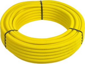 Henco meerlagenbuis glad, uitwendige buisdiameter 20mm, wanddikte 2mm, met mantelbuis, buis geel, buitenlaag kunststof, binnenlaag kunststof, tussenlaag aluminium, kwaliteitsklasse binnenlaag PE-Xc, kwaliteitsklasse buitenlaag PE-Xc, nom. diameter DN 16, 5 lagen, handelslengte 25m,