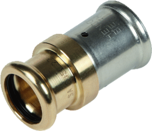 Henco fitting met 2 aansluitingen 1-delig, lengte 55mm, recht, uitwendige buisdiameter aansluiting 16mm, nom. diameter aansluiting 1 DN 8, aansluiting 1 messing, uitwendige buisdiameter aansluiting 15mm, aansluiting 1 persmof, nom. diameter aansluiting 2 DN 8, aansluiting 2 persmof, KIWA-keur,