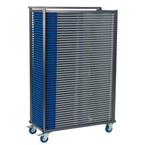 Wagen met klapstoelen Europa, Type voet: Wielen, Frame kleur: Grijs, Capaciteit: 50, Totale breedte: 1000 mm, Totale diepte: 470 mm, Totale hoogte: 1600 mm, Model: Wagen + 50 stoelen, Zitting kleur: Blauw, Buis materiaal: Staal