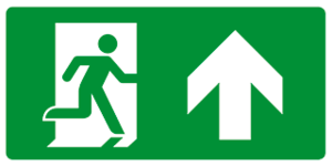 Pikt-O-Norm reddingsteken bord, polypropyleen (PP), groen, (hxb) 150x300mm, met waarschuwingssymbool, betekenis pictogram nooduitgang omhoog rechts, norm ISO 7010
