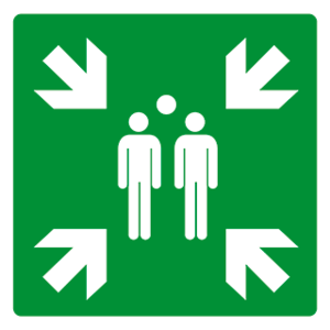 Pikt-O-Norm reddingsteken bord, polypropyleen (PP), groen, (hxb) 200x200mm, met waarschuwingssymbool, betekenis pictogram verzamelplaats, norm ISO 7010