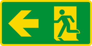 Pikt-O-Norm reddingsteken bord, fotoluminiscerend, groen, (hxb) 150x300mm, nalichtend, met waarschuwingssymbool, betekenis pictogram nooduitgang links, norm ISO 7010