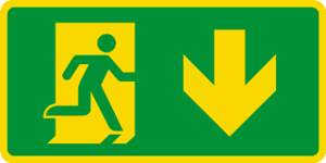 Pikt-O-Norm reddingsteken bord, fotoluminiscerend, groen, (hxb) 150x300mm, nalichtend, met waarschuwingssymbool, betekenis pictogram nooduitgang omlaag, norm ISO 7010