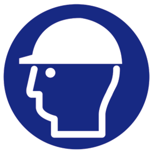Pikt-O-Norm gebodsteken bord, polypropyleen (PP), blauw, (hxb) 20x20mm, diameter 200mm, met waarschuwingssymbool, betekenis pictogram helm verplicht, rond, norm ISO 7010