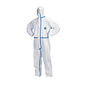 Voor verf-, polijst- en onderhoudswerkzaamheden. Wegwerpoverall met capuchon, aanbevolen voor werken met asbest. Waterdicht door genaaide en bedekte naden. Bestand tegen spatten van chemische stoffen op waterbasis en op lage druk. Zelfklevende klep op de kin. Dubbele ritssluiting.