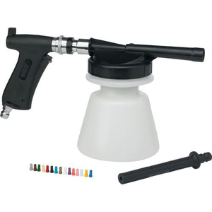 • Inhoud van een set: can, foam-injector, aanzuigslang, combinatie pistool, 14 doseernozzels en een afspuitlans