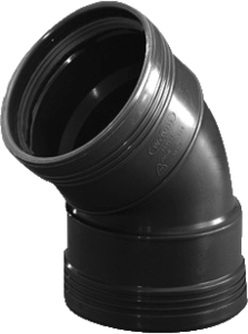 WAFX PP BOCHT 45GR 110 M/M ZWR - WAV fitt m/2 aansl 1-del Wafix, le 1.8mm, bocht