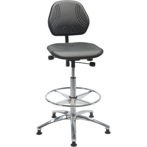 Ergonomische polyurethaan ESD-stoel Comfort, Zitting materiaal: Polyurethaan, Stoel model: Hoog, Min. zithoogte: 60 cm, Max. zithoogte: 86 cm, Kleur: Zwart, Zitbreedte: 42 cm, Zitdiepte: 42 cm, Rugbreedte: 37 cm, Rughoogte: 31 cm, Onderstel materiaal: Aluminium, Asynchroontechniek: ja, Max. belasting: 110 kg, Recyclebare verpakking: Ja - 100%, Gerecyclede verpakkingen: 70 %, Recyclebaar product: Ja - 100%, Gerecycled product: 9 %, Rughoogte-instelling: ja, Stapelbaar: nee, Model: Hoog, Zitneiginstelling: ja, Zithoogte verstelling: ja