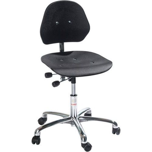 Ergonomische kunststof bureaustoel voor de werkplaats Solid, Zitting materiaal: Polyurethaan, Stoel model: Hoog, Min. zithoogte: 54 cm, Max. zithoogte: 73 cm, Kleur: Zwart, Zitbreedte: 42 cm, Zitdiepte: 42 cm, Rugbreedte: 31 cm, Rughoogte: 37 cm, Onderstel materiaal: Aluminium, Asynchroontechniek: ja, Max. belasting: 110 kg, Recyclebare verpakking: Ja - 100%, Gerecyclede verpakkingen: 70 %, Recyclebaar product: Ja - 100%, Gerecycled product: 13 %, Rughoogte-instelling: ja, Stapelbaar: nee, Model: Hoog, Zitneiginstelling: ja, Zithoogte verstelling: ja